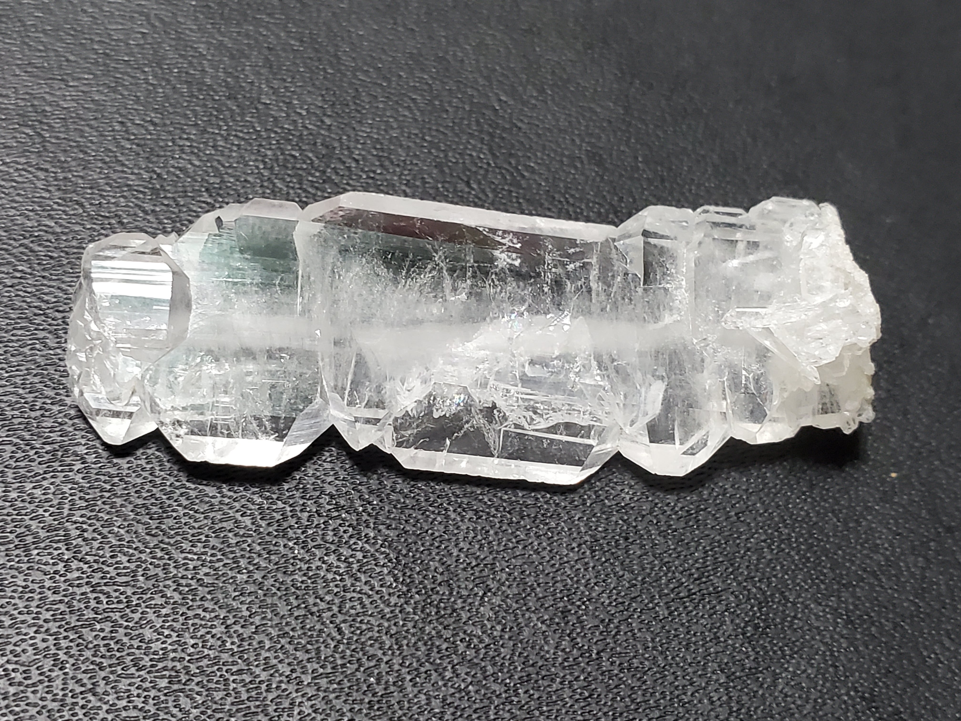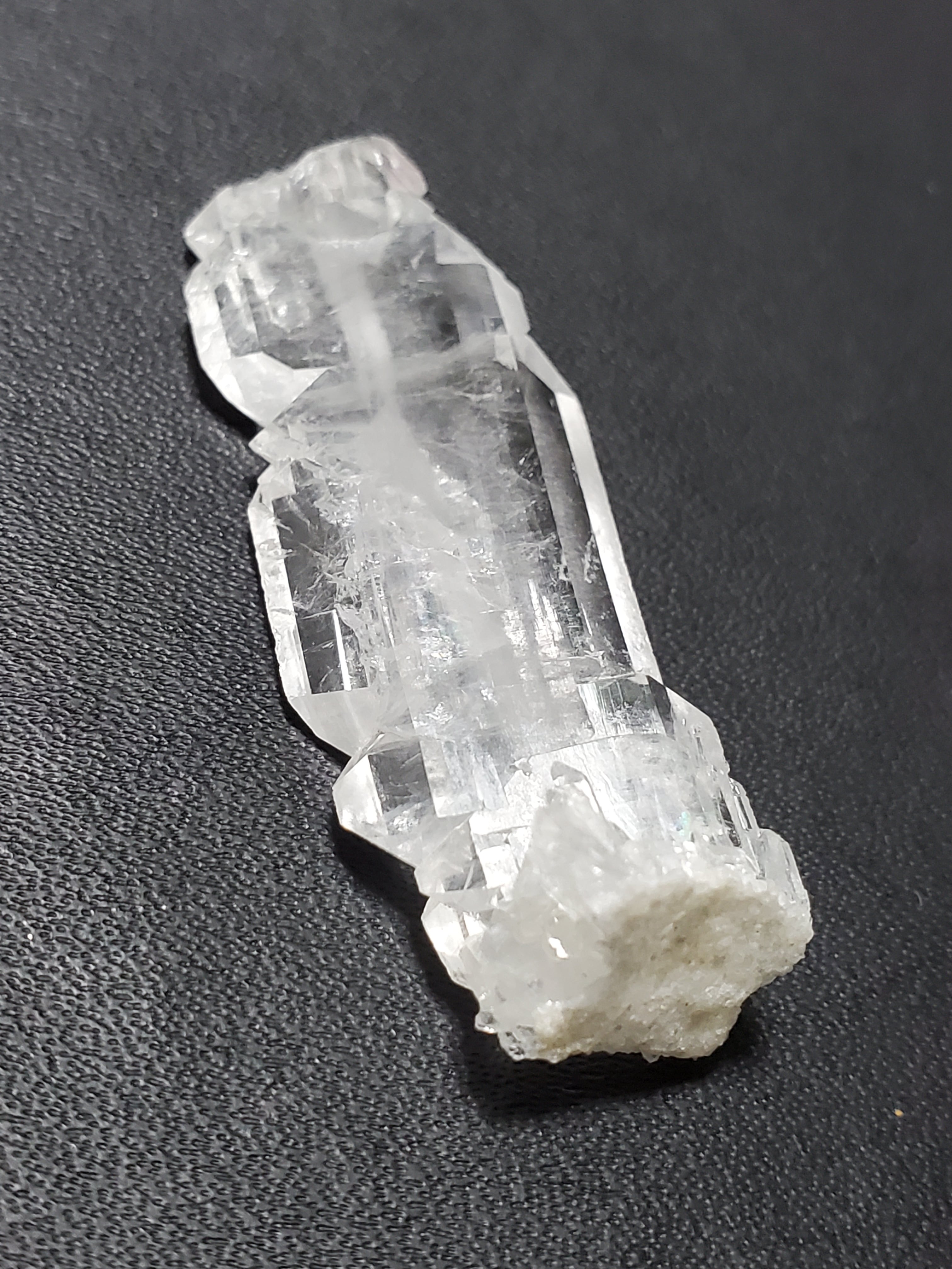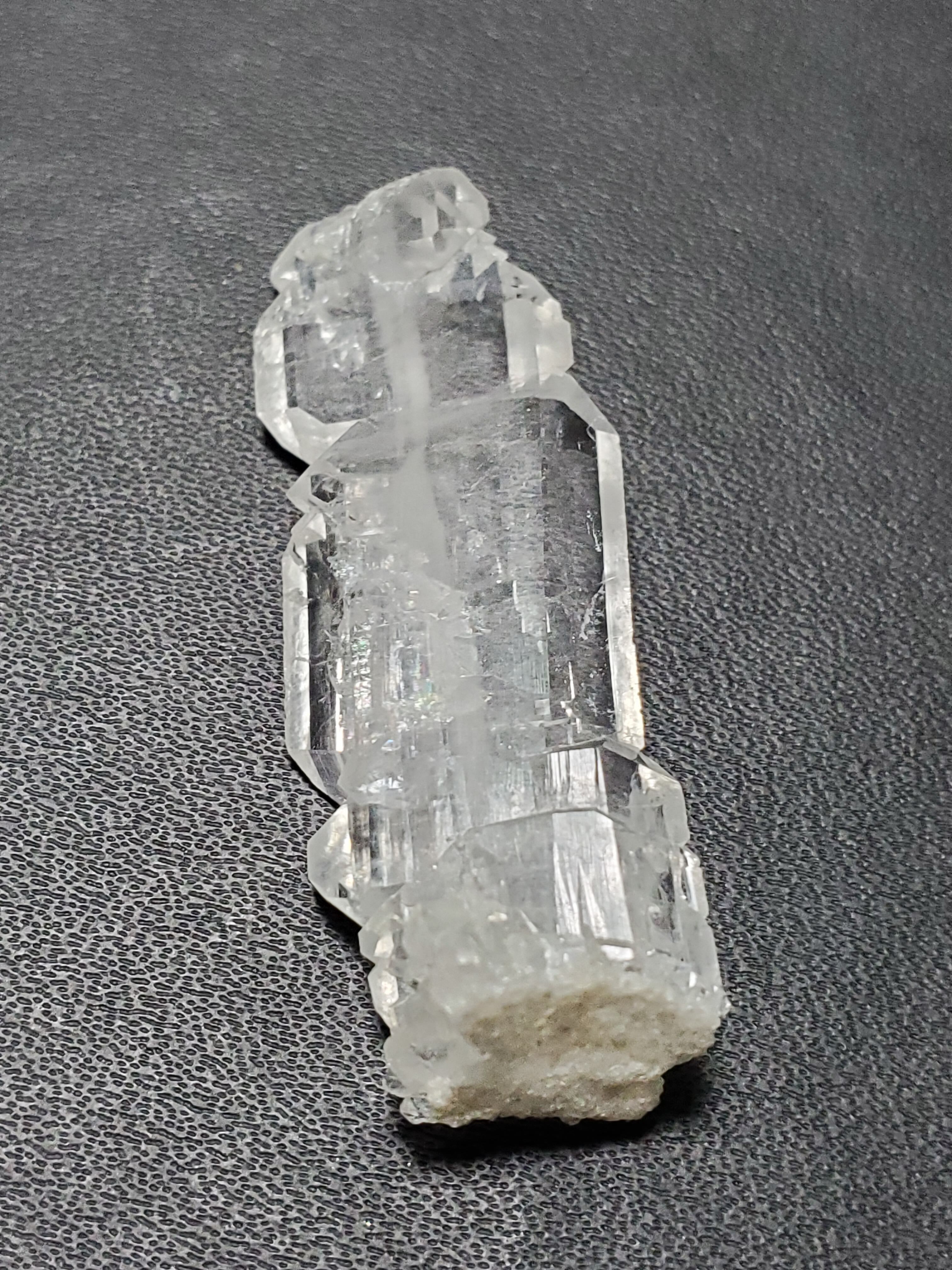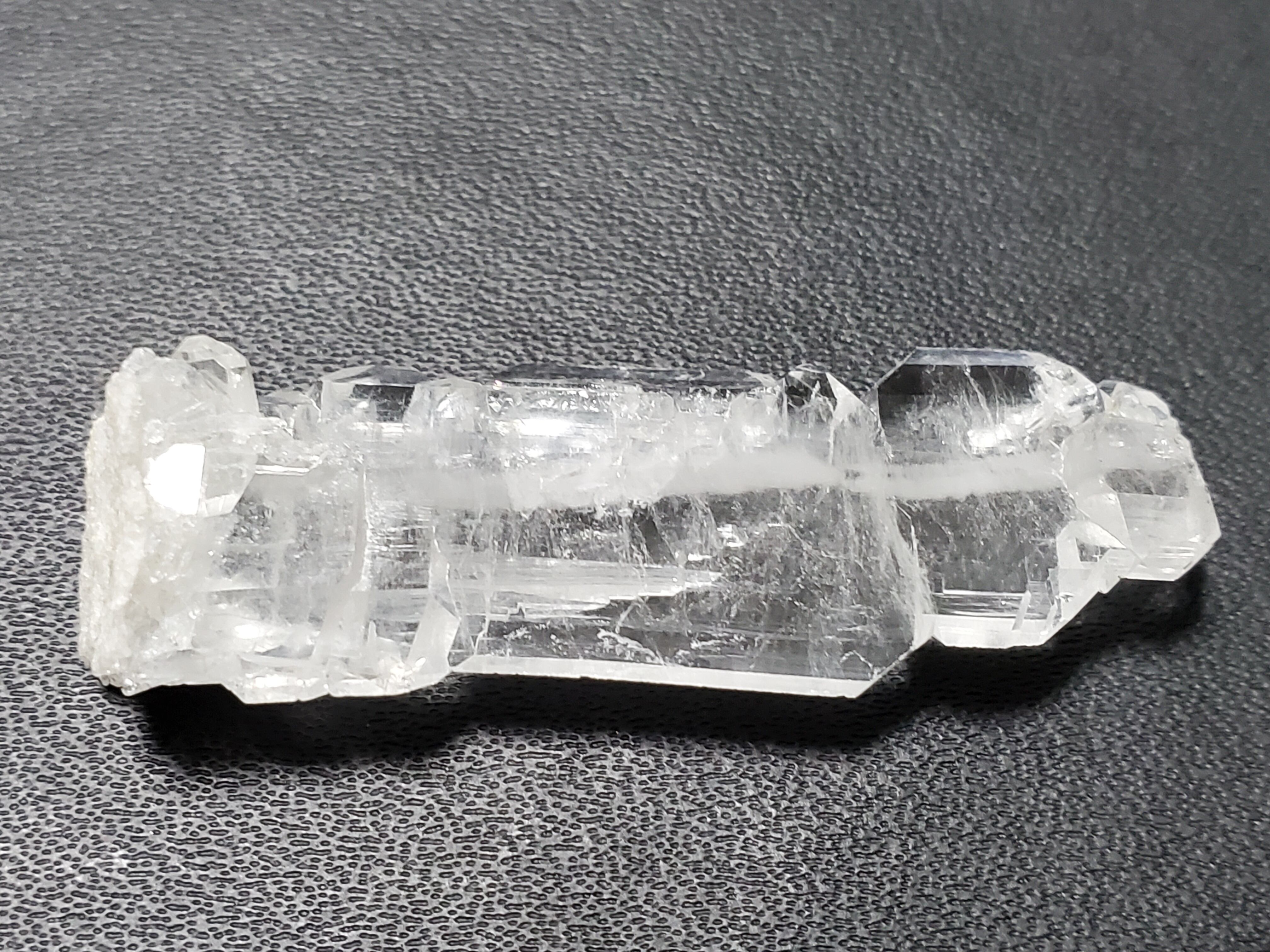 水晶としては、少し変わった形をしています。水晶の持ち味である透明感や、見た目の鋭さよりも、糸の部分を中心に白くにごったものや、結晶が平行に集まり(平行連晶)ごつごつして無骨な印象を与えるものなどがあります。