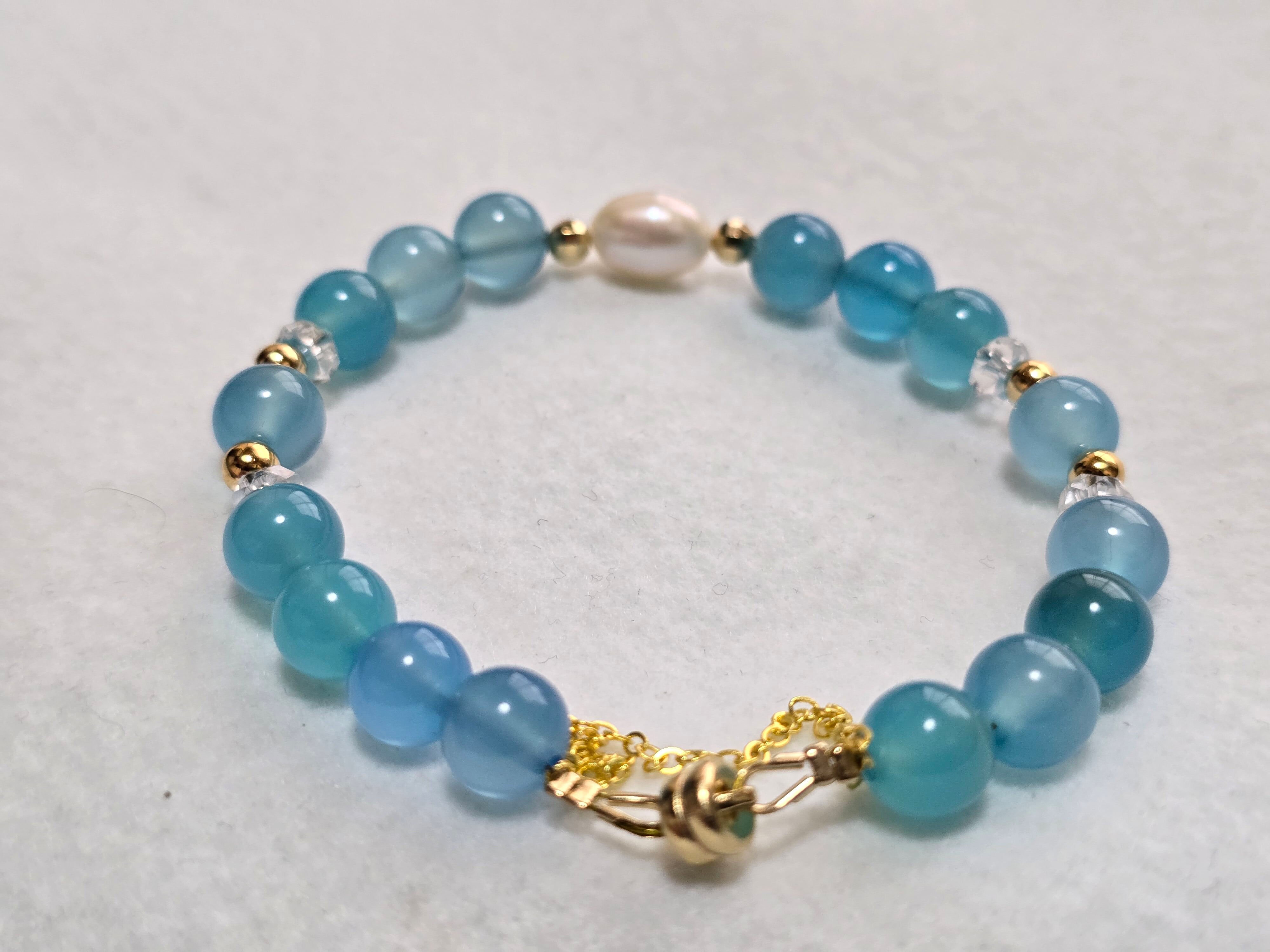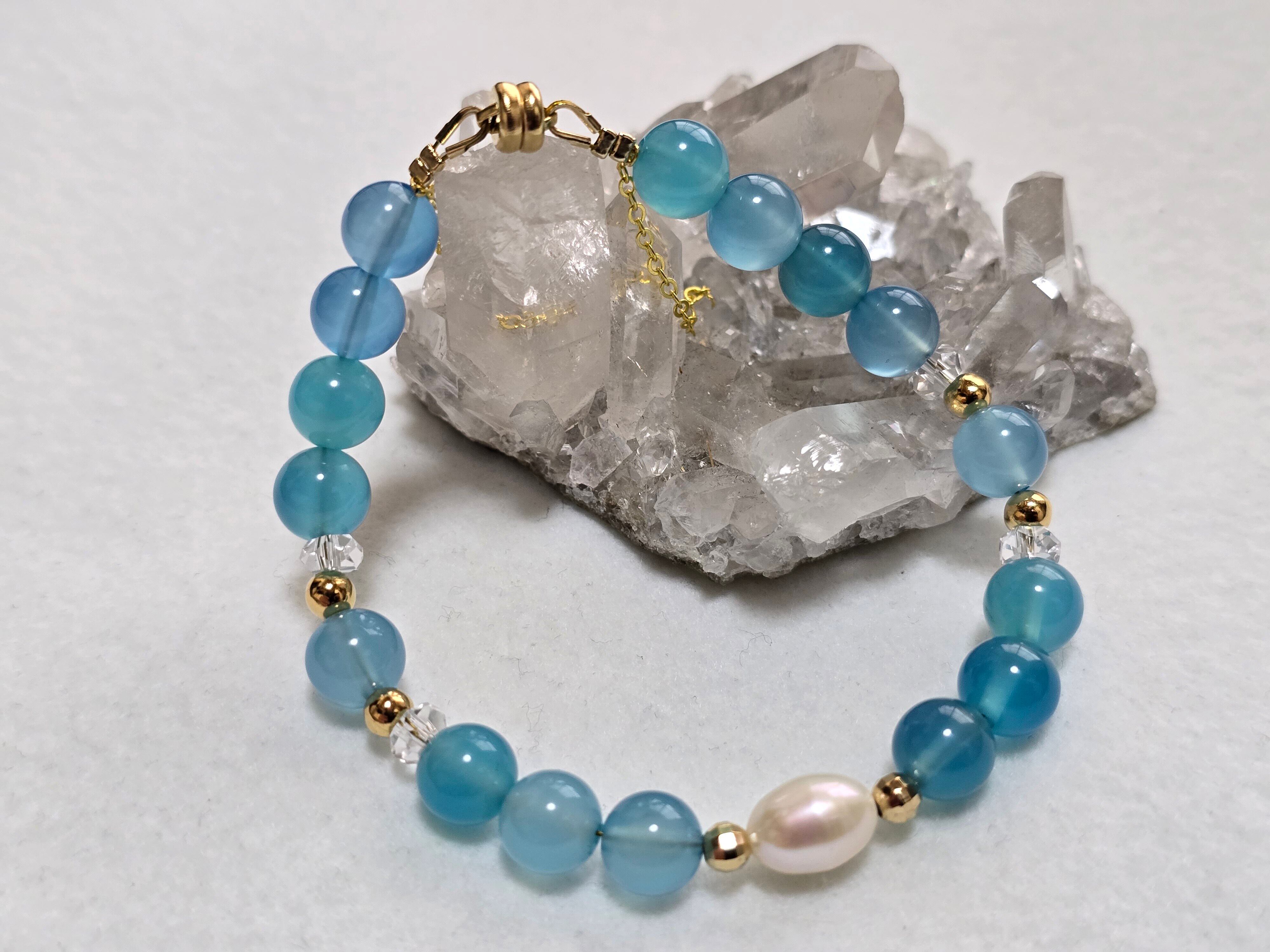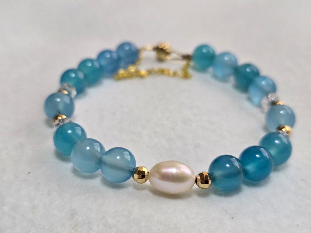 ブルーカルセドニーと淡水パールの組み合わせ
