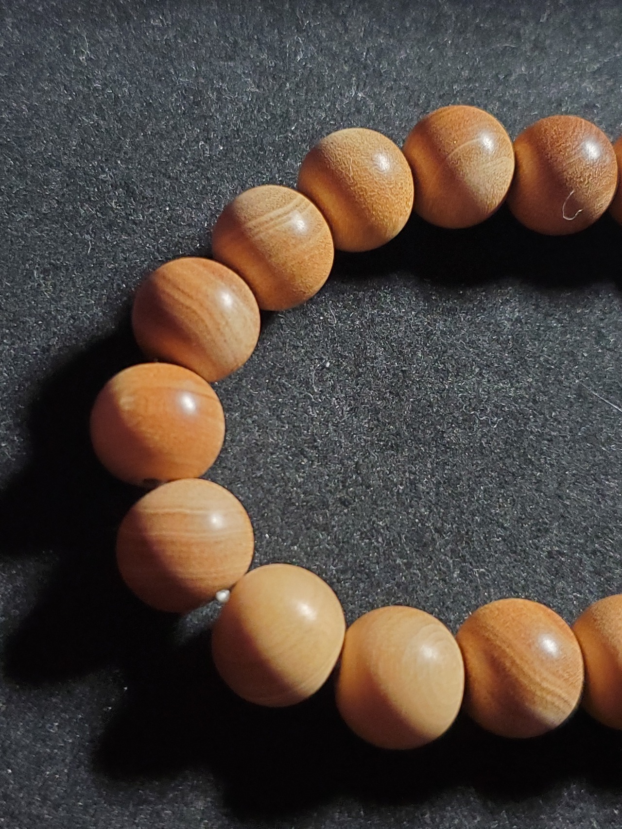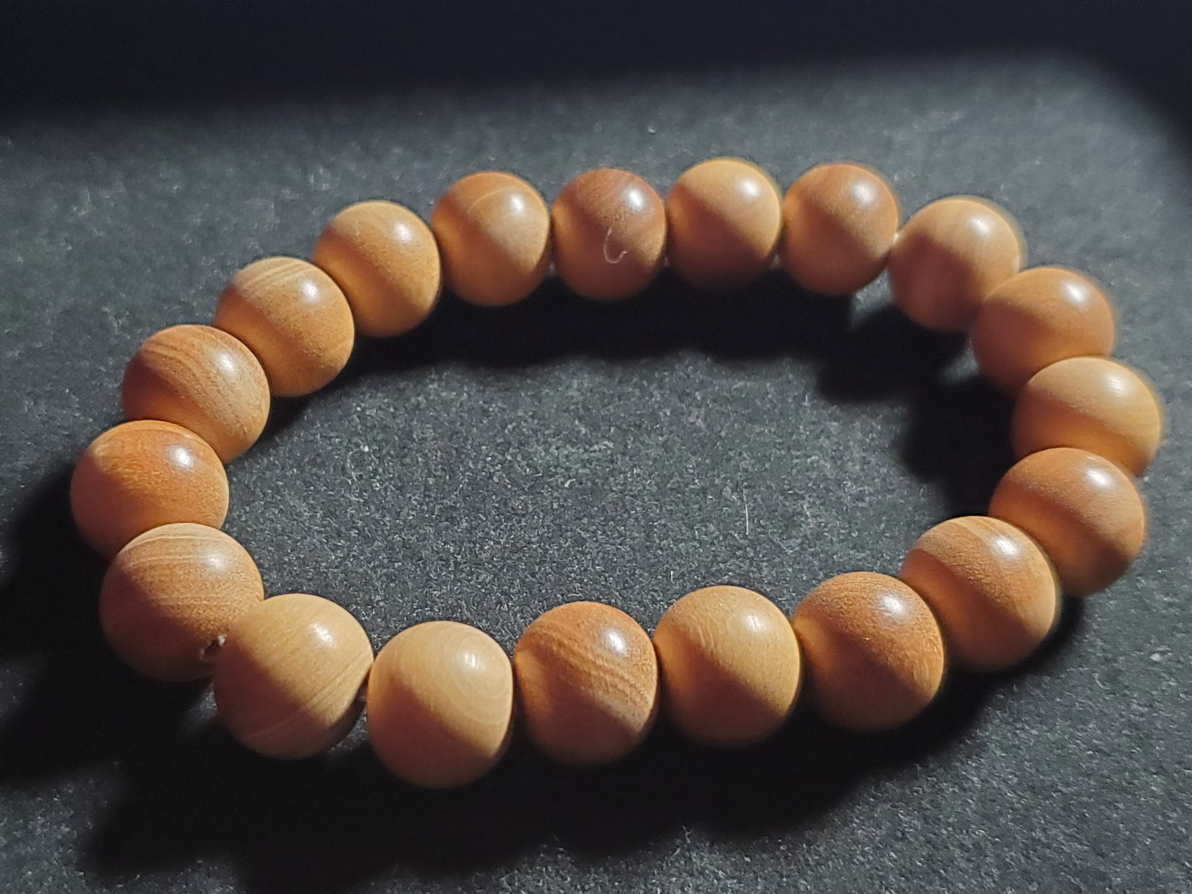 至高の白檀(サンダルウッド)とされるインドマイソール産を用いた念珠ブレスレットです。白檀の清らかな中にどこか甘く妖艶な香りは古より魔除けとして珍重されてきました。通常は香を焚くことでその香りを魔除けとして用いますが、身に付けたり、白檀でできた置物を置くことでも同様の使われ方をしてきました。その中でもインドマイソール産の白檀は素材そのままでも存在感溢れる芳香を感じる逸品です。